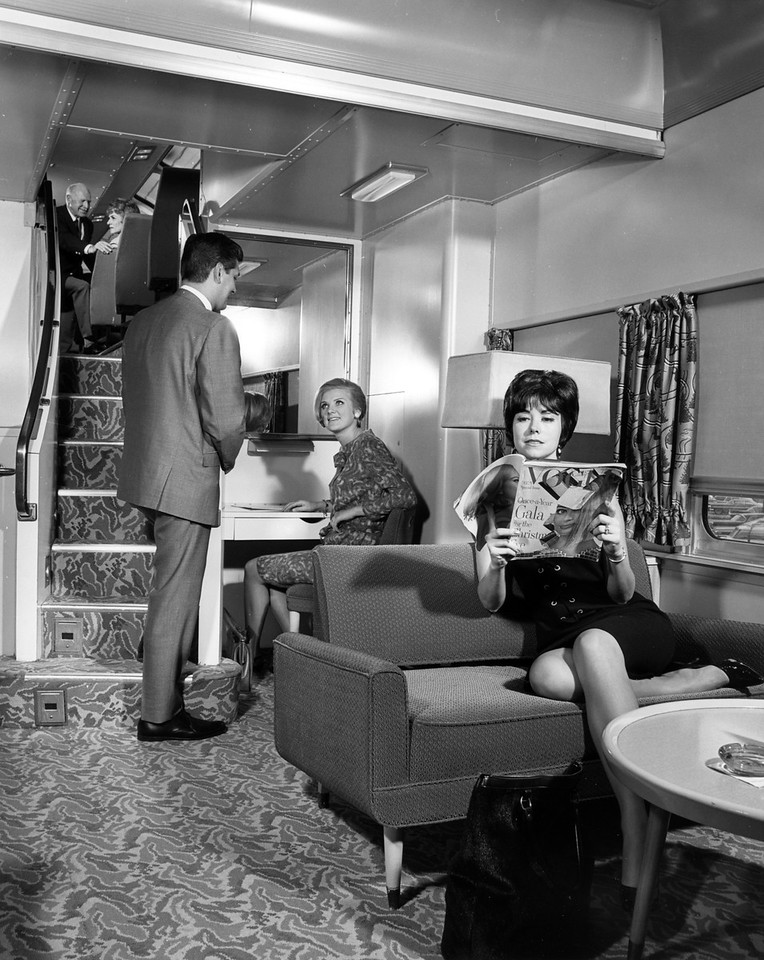 This pic was taken in 1947 aboard the Empire Builder – this is a long haul coach. Unlike modern airliners, you could recline your seat without ending up in the lap of the passenger behind you – even in coach class: