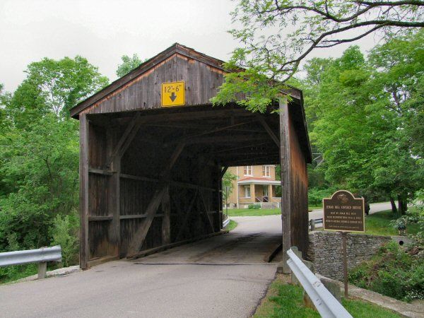 I love these covered bridges…and I’m lucky enough to be able to drive through one every day! This is the entrance to the neighborhood where I live. The Jediah Hill Covered Bridge, is the oldest still active bridge in Hamilton County, built in 1850. It’s been refurbished/rebuilt twice to allow modern fire equipment into the neighborhood (there’s no other entry). Every couple of years, Springfield Township replaces a few of the road timbers. One of our neighbors has recently put lights on the bridge such that the exterior is colorfully lit at night.