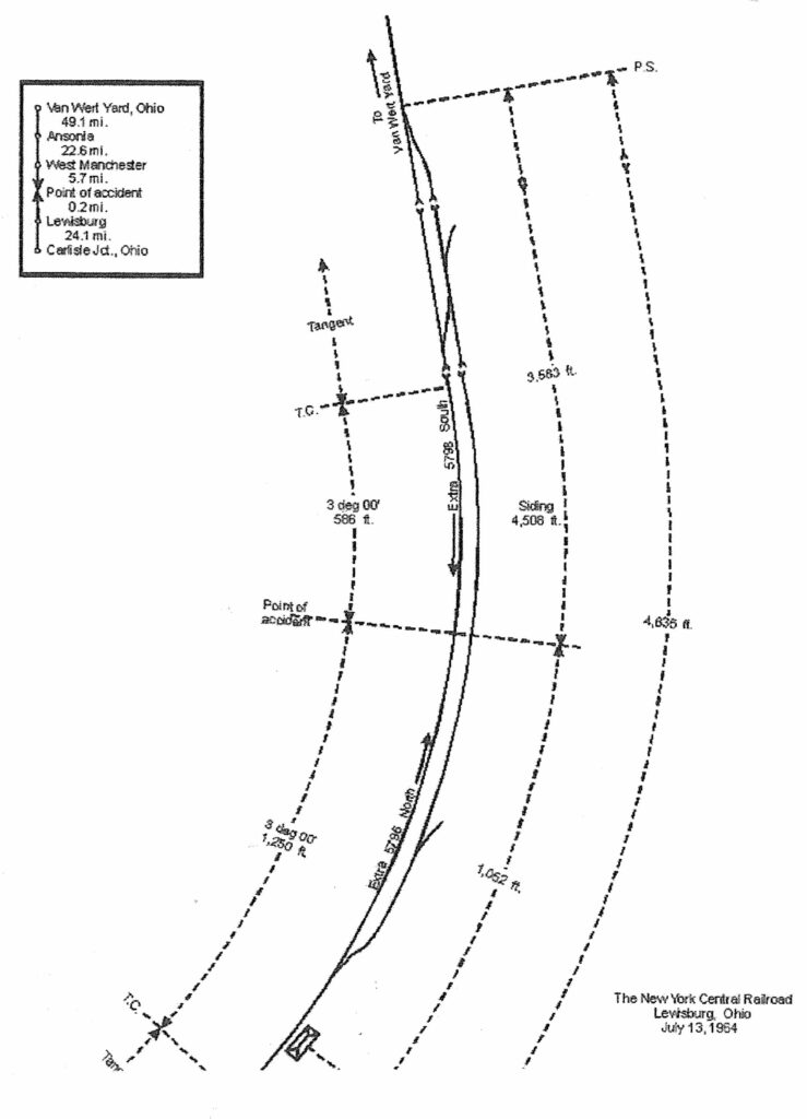 At 3:50 p.m, July 13, 1964. a head-on collision occurred between two New York Central freight trains at Lewisburg, Ohio. All crew members of both trains were injured.