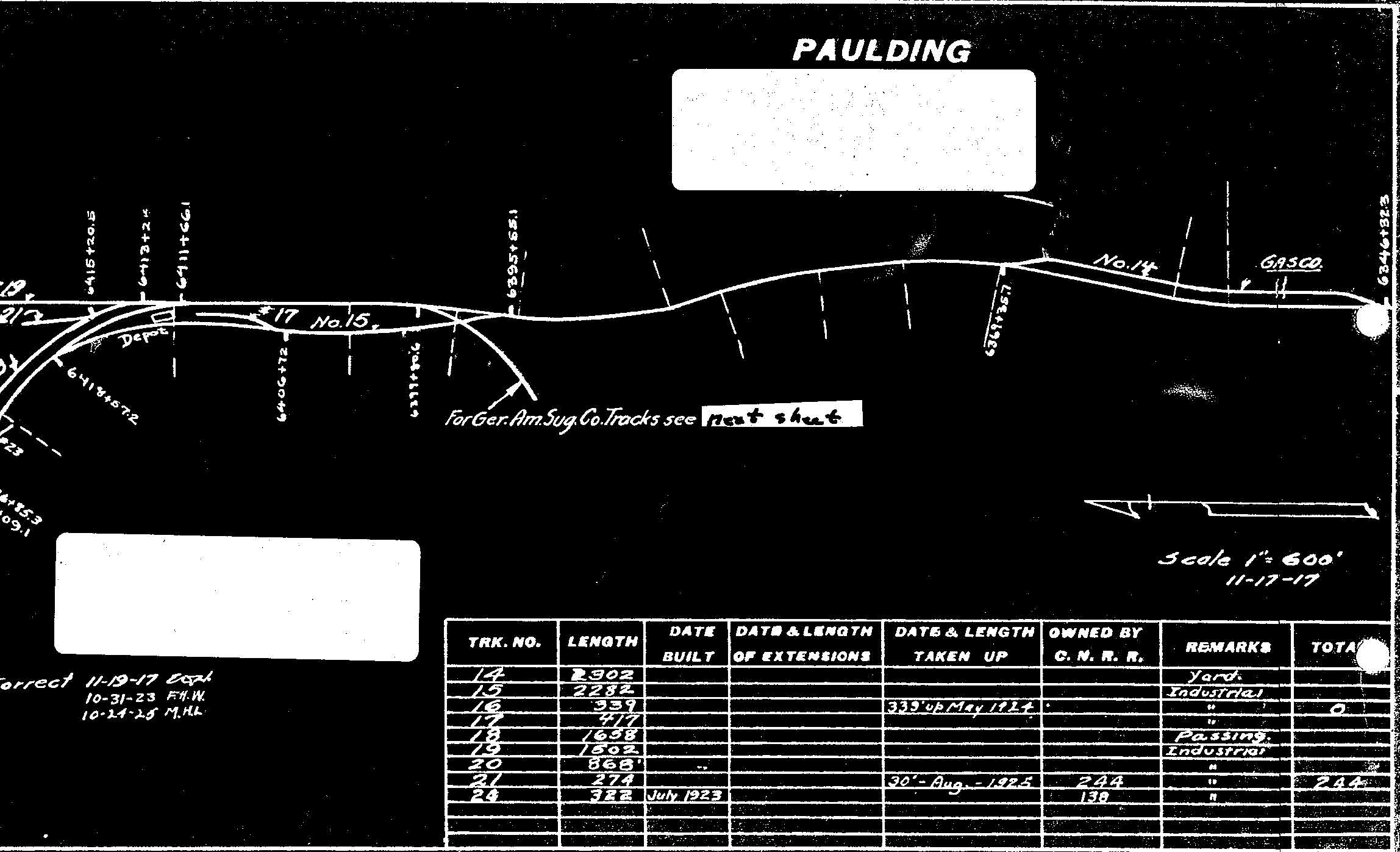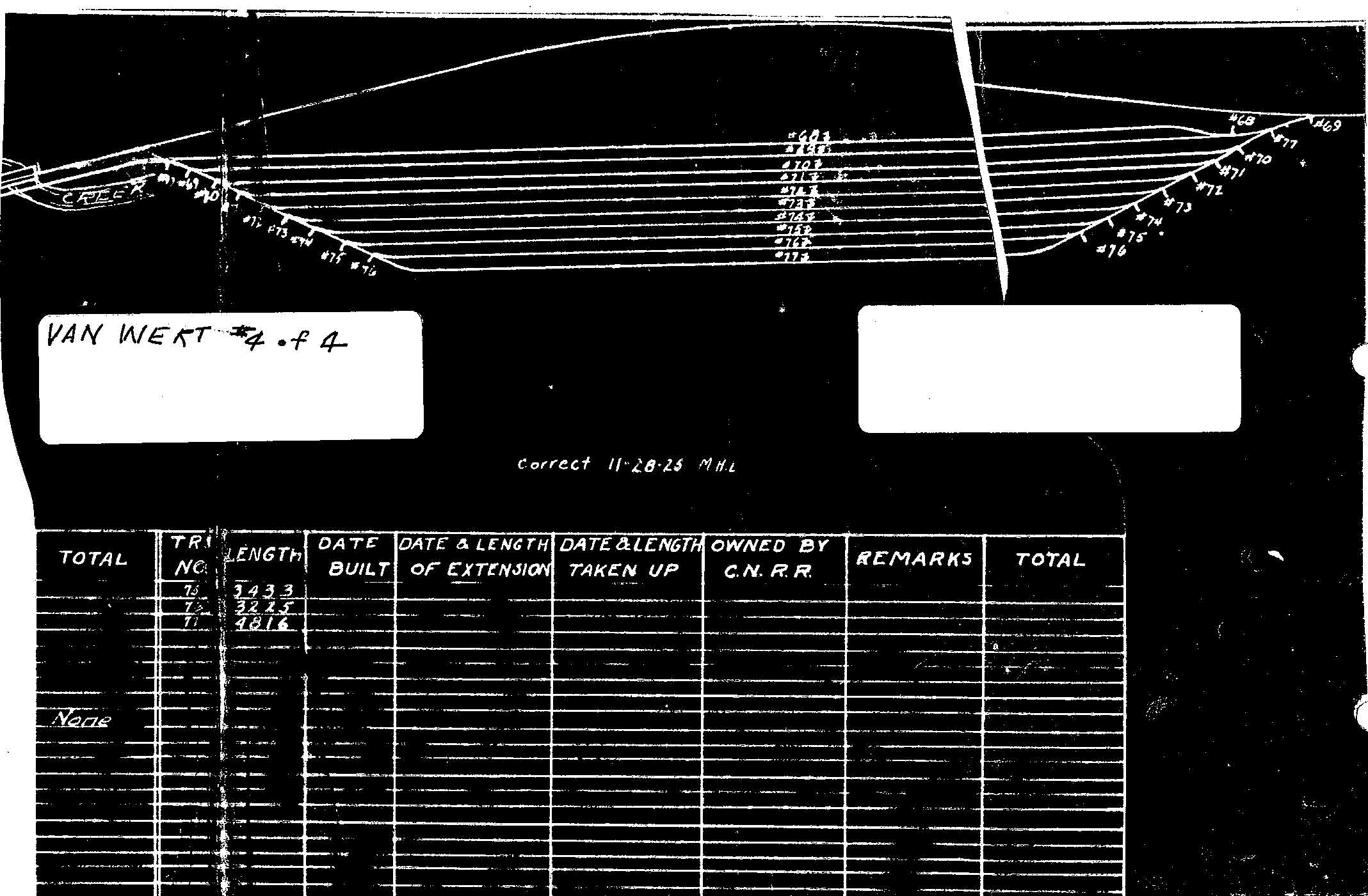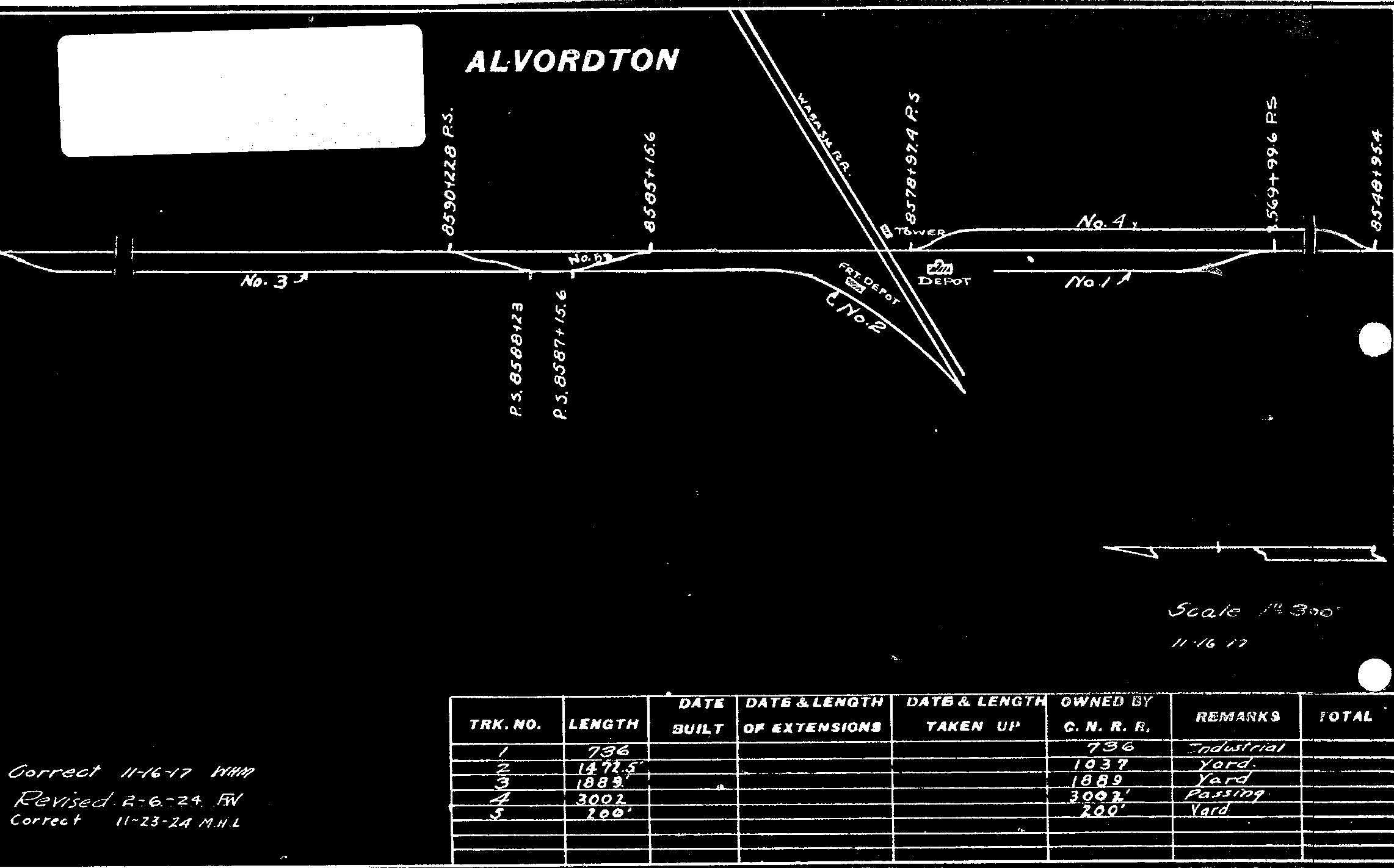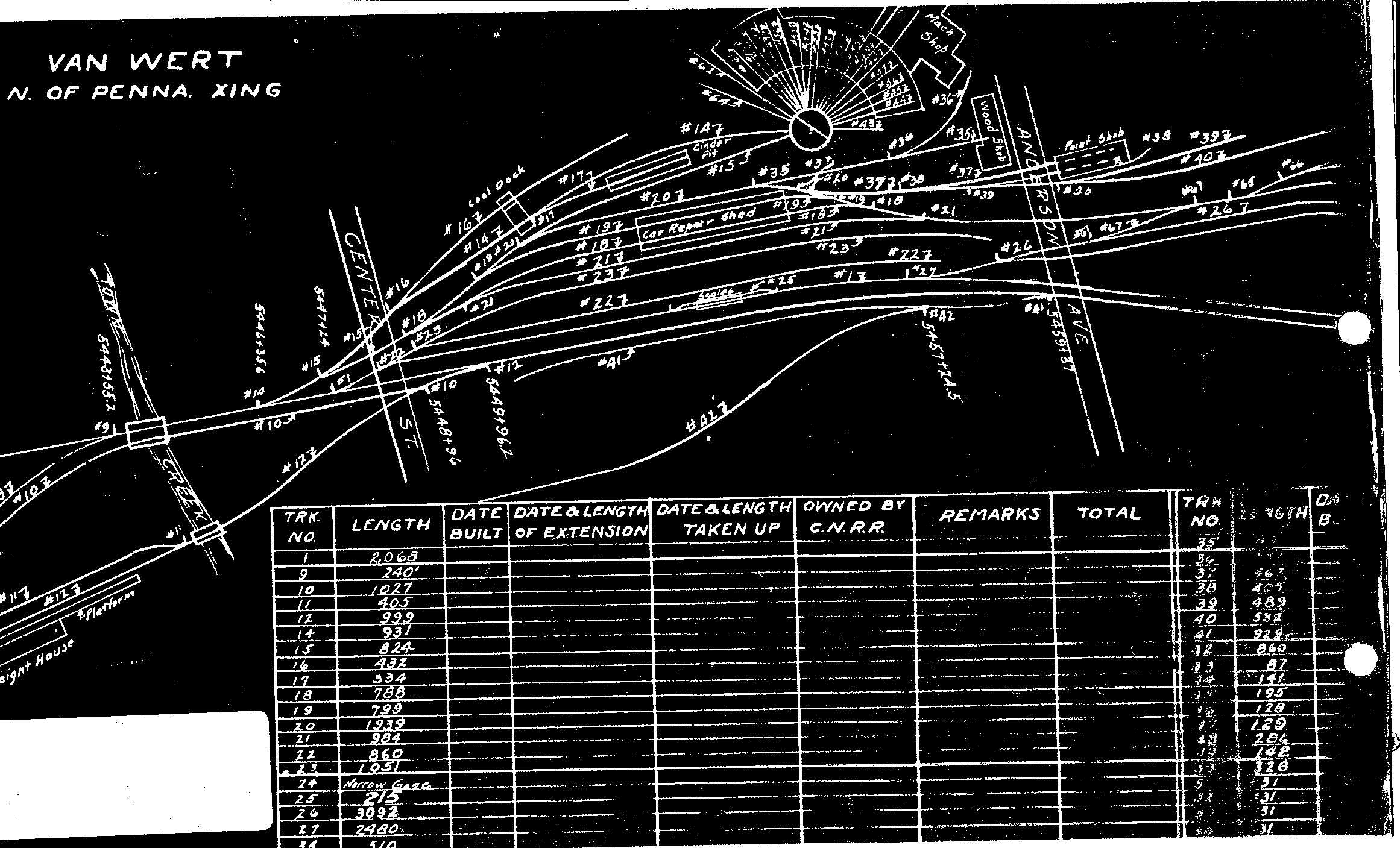 THIS SET OF PRINTS WAS COPIED FROM THE ARCHIVES OF MR. HARLEY MARSHALL, VAN WERT, OHIO, 20 JULY 1997. THIS IS NOT A COMPLETE SET. PRINTS FOR SINGLE TRACK AND PASSING SIDING ARE NOT INCLUDED. WHAT IS HERE IS APPROXIMATELY 1/3 OF THE COMPLETE SET.